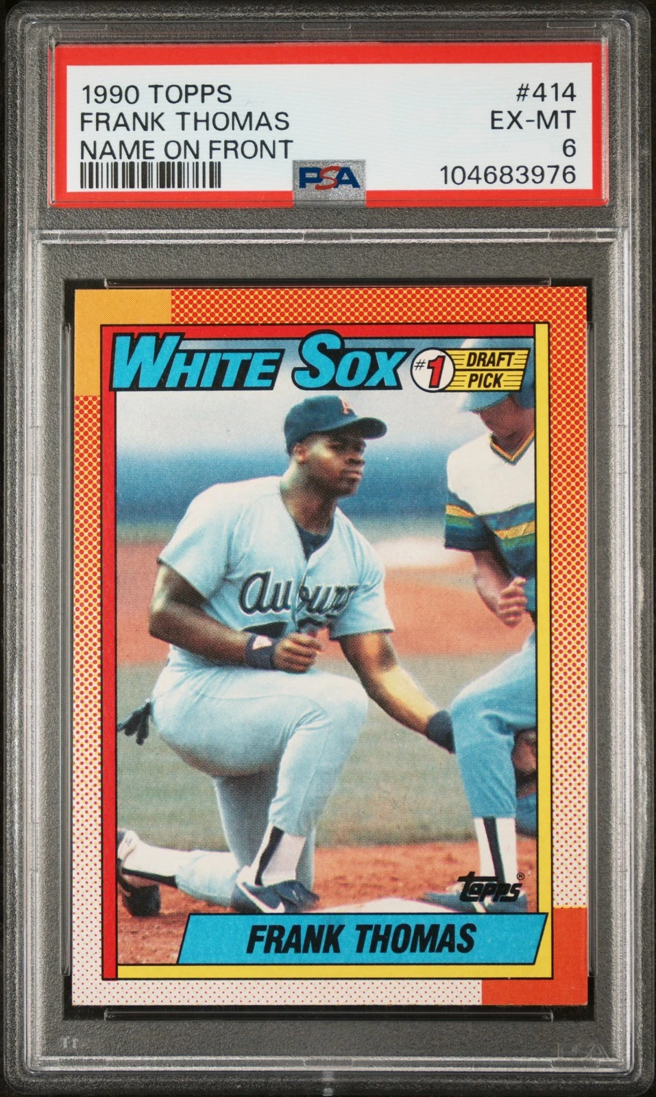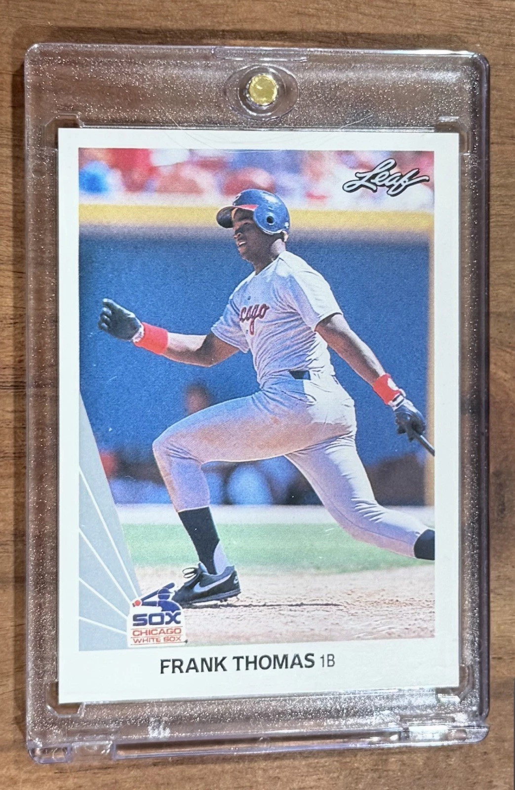 Frank Thomas rookie cards are centered on his 1990 issues, with 1990 Leaf #300 and 1990 Topps #414 leading most collections. Raw copies are common, but strong grades can command real premiums because clean centering and sharp corners are harder than they look in this era.