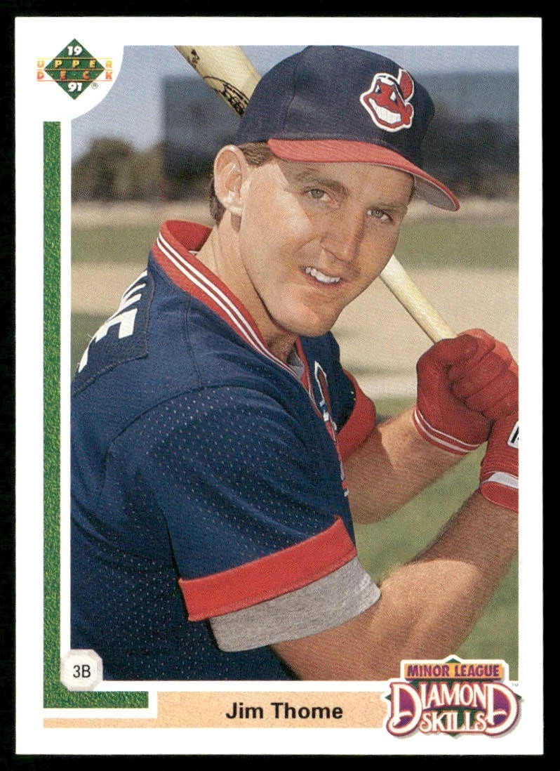 Jim Thome rookie cards center on his 1991 Bowman #68 and 1991 Upper Deck Final Edition #17F, with both sets offering Hall of Fame power at accessible price points for most collectors.