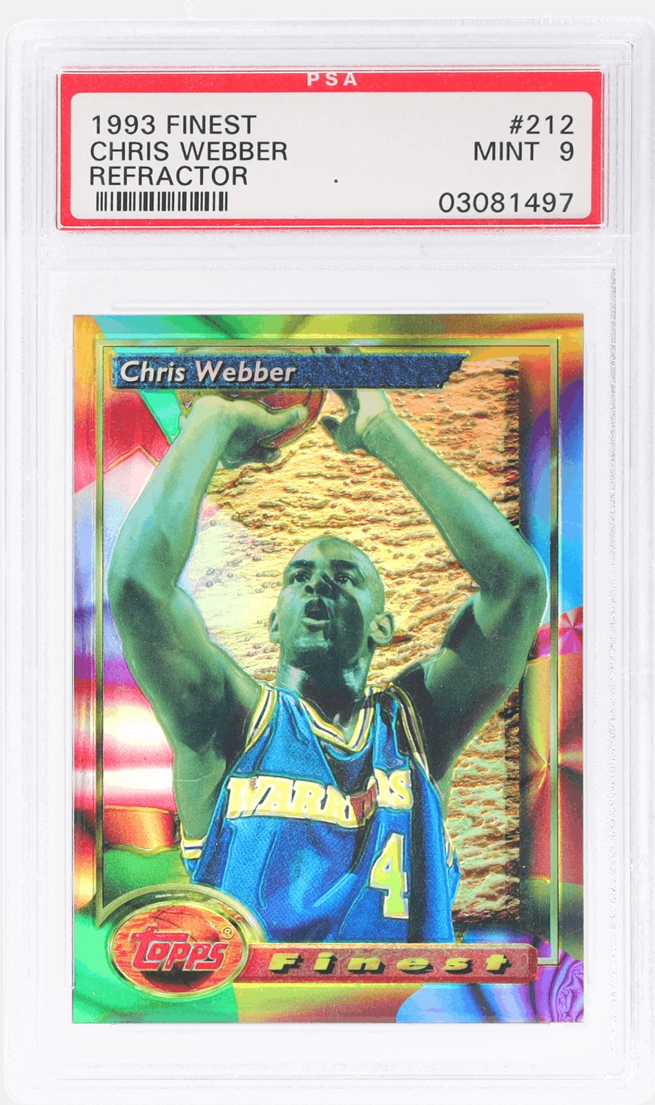 Chris Webber's card market is anchored by the historical significance of the 1993 Finest set. While mass-produced base cards are affordable, high-grade examples and rare Refractors carry significant premiums. The 1993 Finest Refractor is a hobby landmark that kicked off the modern parallel era.