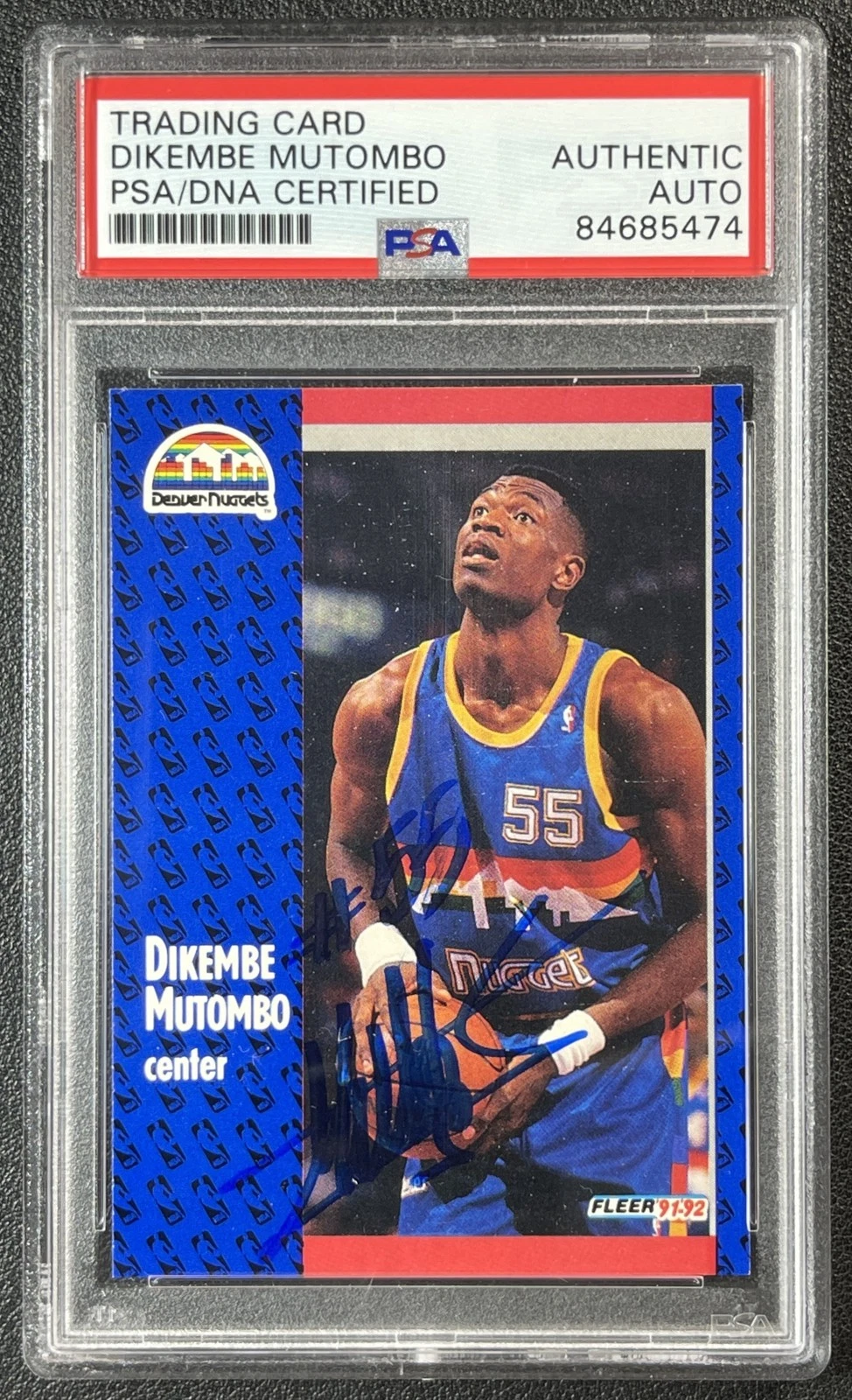 Grading can meaningfully separate Dikembe Mutombo rookie cards, especially for 1991-92 Upper Deck and other glossy base sets where clean surfaces are harder to find than the raw population suggests. Population reports for PSA 9 and PSA 10 copies remain modest relative to total submissions, which helps explain the premium for top-end slabs compared with raw or mid-grade cards.