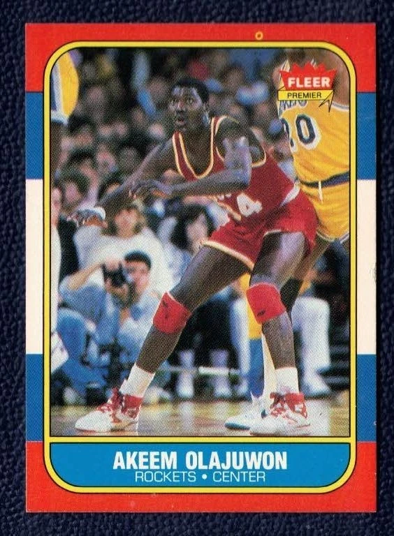 Hakeem Olajuwon’s 1986 Fleer #82 is a key card from the most important basketball set ever produced. While not as costly as Jordan, high-grade copies are blue-chip investments, and even raw copies in good condition hold steady value.