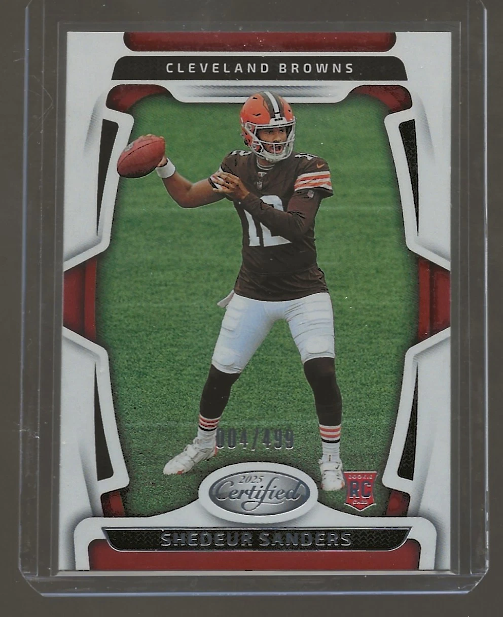 Shedeur Sanders is a quarterback drafted into the NFL in 2025 and tied to one of the highest-visibility storylines in modern football collecting as the son of Deion “Coach Prime” Sanders. Early career narratives and starting opportunities can move modern QB markets quickly, which is why collectors often build a small core: a flagship Donruss Rated Rookie, a Prizm rookie, and one scarcer numbered or auto card as a longer-term hold.