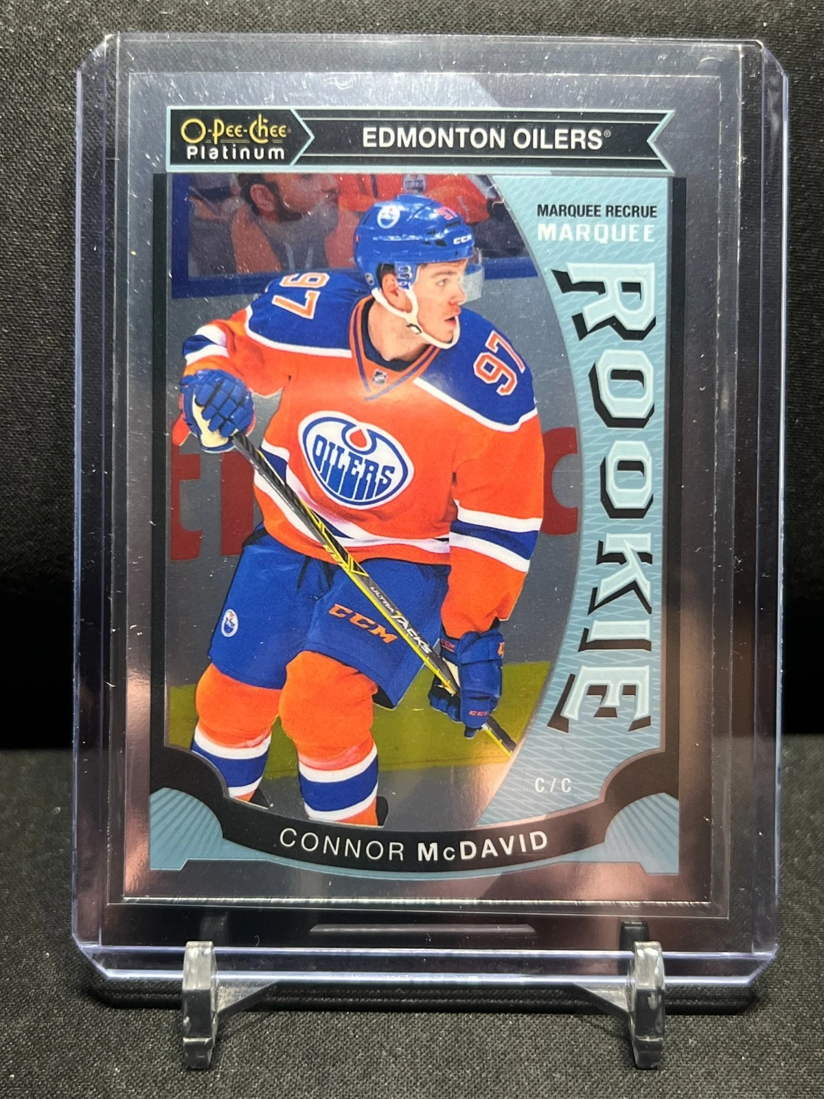If you want the true Connor McDavid rookie card most collectors recognize, start with 2015-16 Upper Deck Young Guns #201. From there, many collectors upgrade into on-card autos and low-serial patch autos as budget allows.