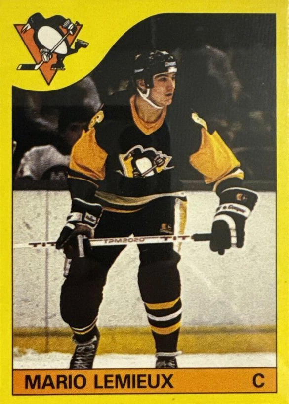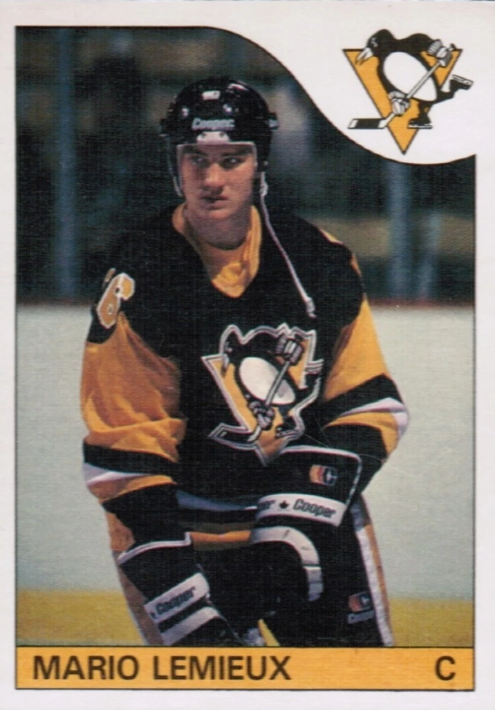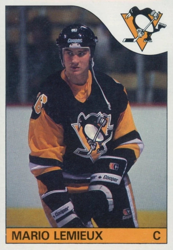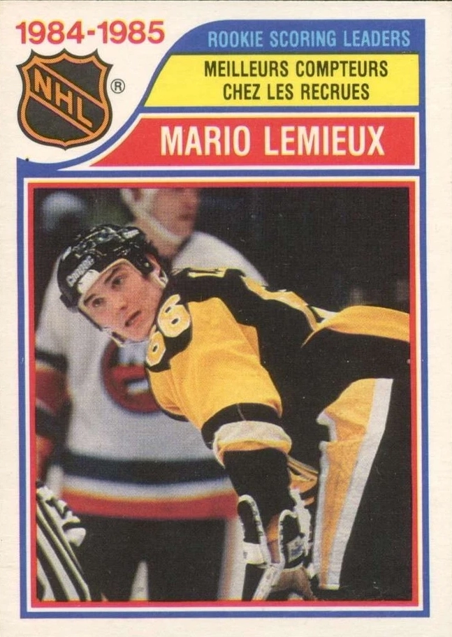 Mario Lemieux rookie cards highlight one of the greatest scorers in NHL history. Most collectors start with his 1985-86 O-Pee-Chee and Topps #9 rookies, then add rookie-year scoring leaders, box-bottoms, and the O-Pee-Chee sticker for a deeper run.