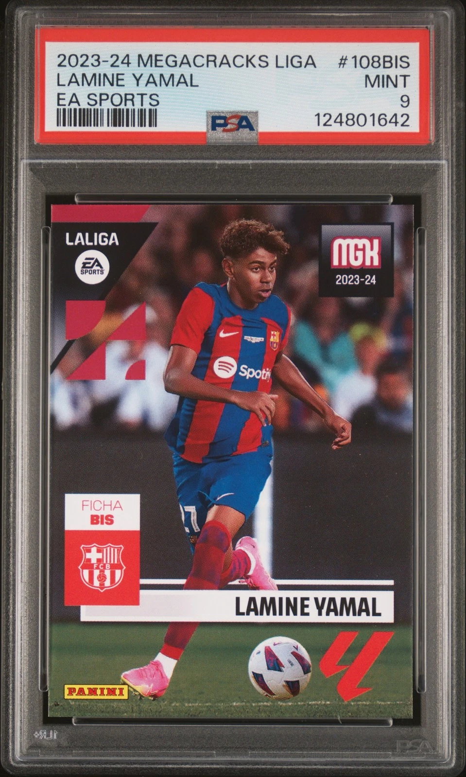 Lamine Yamal is the hottest prospect in global soccer. His "True RC" from Panini Megacracks and his Topps Chrome flagship are both market leaders, with high-grade copies commanding massive premiums.